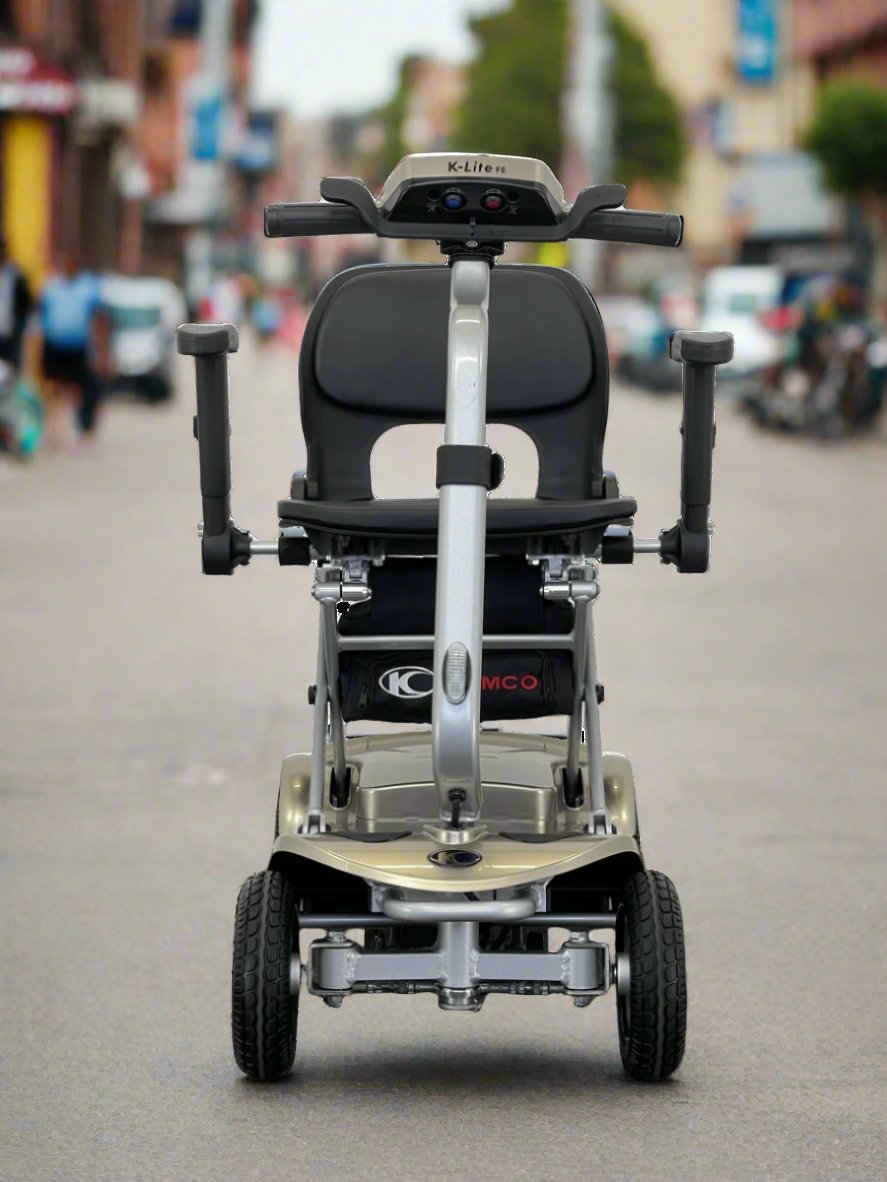 The K-Lite FE will fold down with the click of a button. The frame has been made from special lightweight aluminium, which makes this mobility scooter very easy to manage and lift. The overall weight of the K-Lite FE is just under 30kg making it ideal for those who need a mobility scooter that can easily fit in the back of a car or to take on holiday.