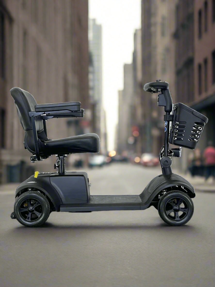 This scooter can be broken apart into 5 manageable parts within 45 seconds with an easy release mechanism. This makes the Vantage Lithium ideal for those wishing to take it apart to fit into their boot to visit supermarkets, shopping centres and hospitals. It is even safe to go on an aeroplane so you can take it on holiday with you.